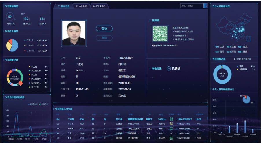 将施工现场的施工过程、安全管理、人员管理、绿色施工等内容,实现定量表达,实现工地的信息化管理。